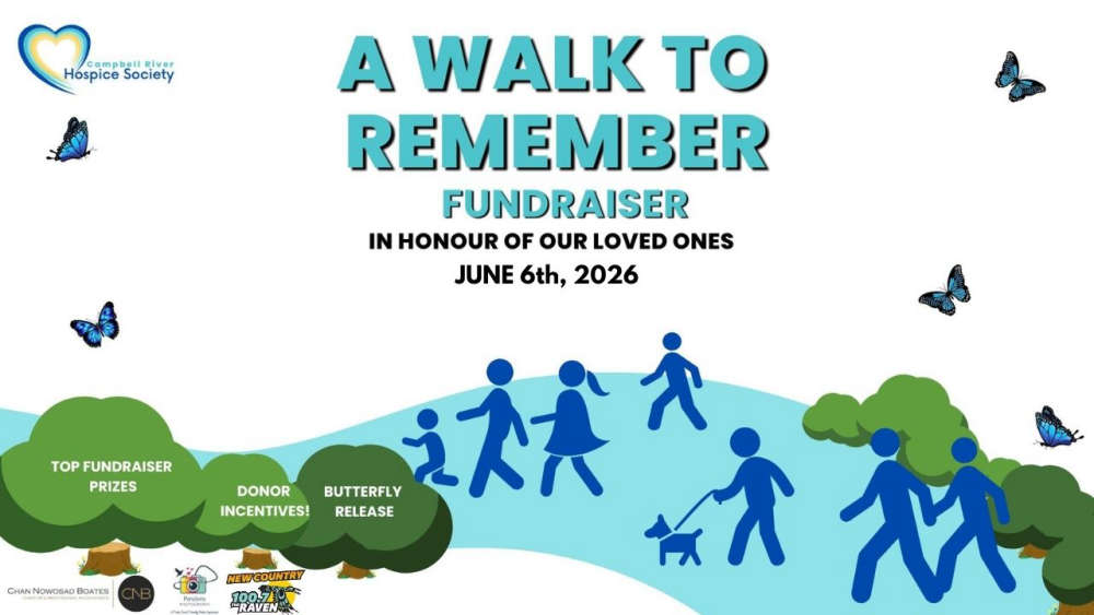 Proceeds raised benefit the Campbell River Hospice Society, supporting children, youth & adults through their grief & end-of-life journey at no cost. It’s from 9am-12pm in the Serenity Garden of the Hospice Center at 4-40 Evergreen Road in Campbell River. To register as an individual or team or for more information, visit A Walk to Remember.