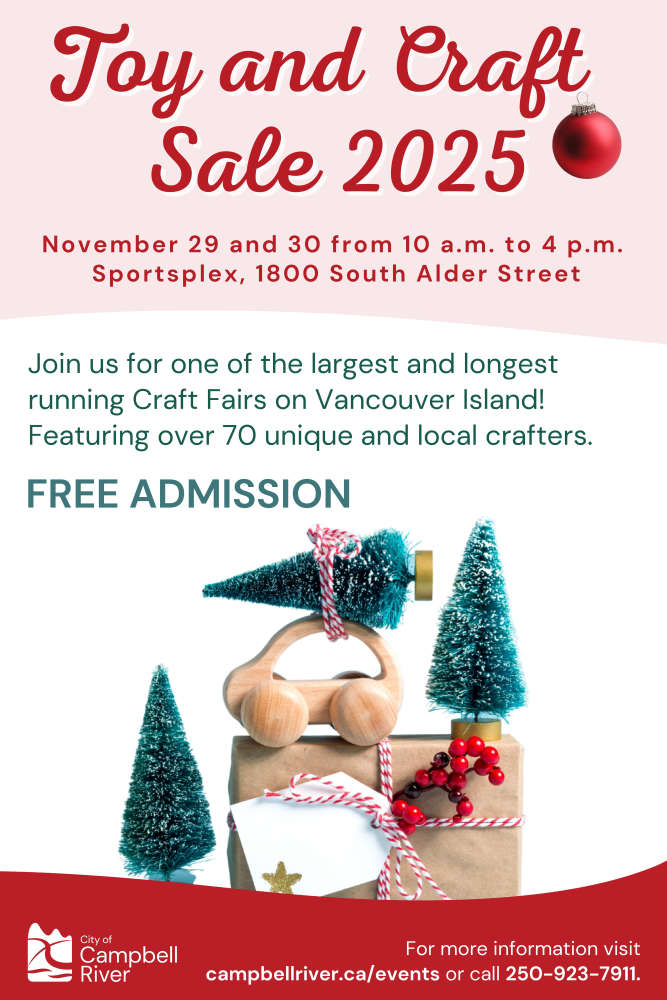 Saturday & Sunday, November 29th & 30h, the City of Campbell River presents the annual Toy & Craft Show & Sale at the Willow Point Sportsplex in Campbell River!