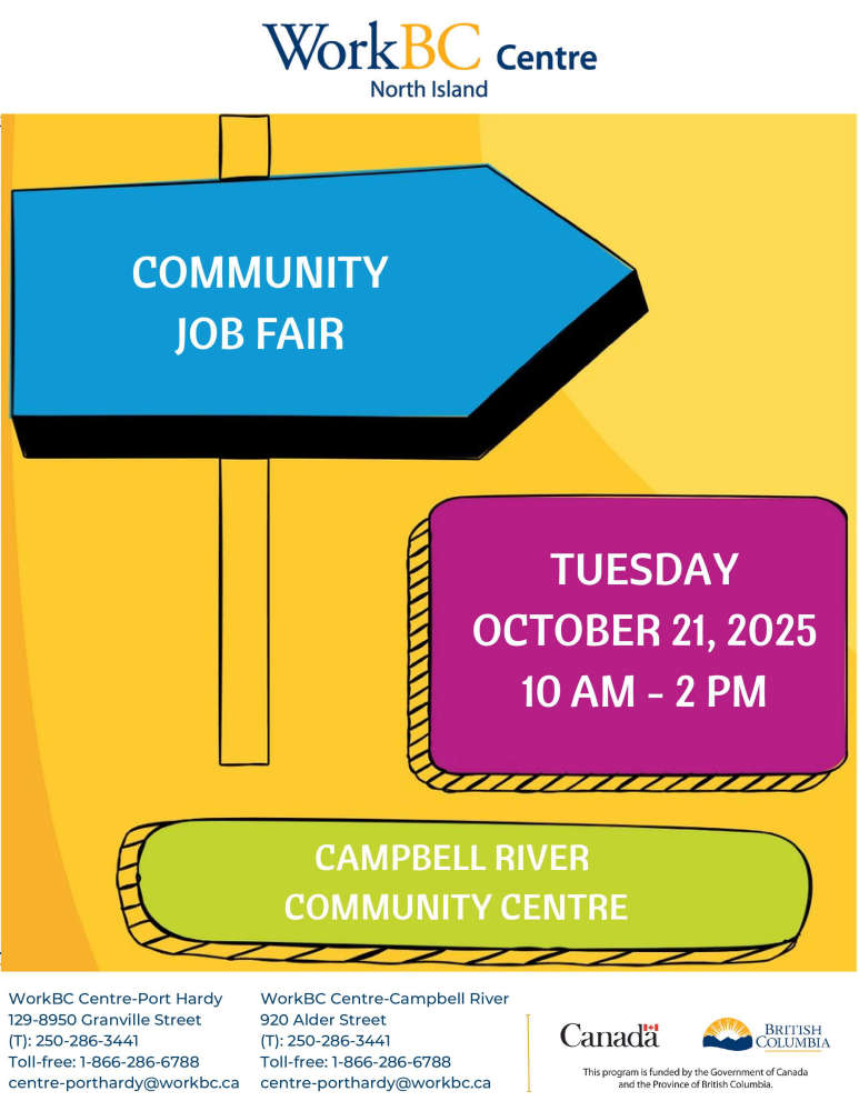 It’s from 10-2pm & free to attend so bring your resume & dress to impress. For more information, visit Campbell River Inclusive In-Person Job Fair.