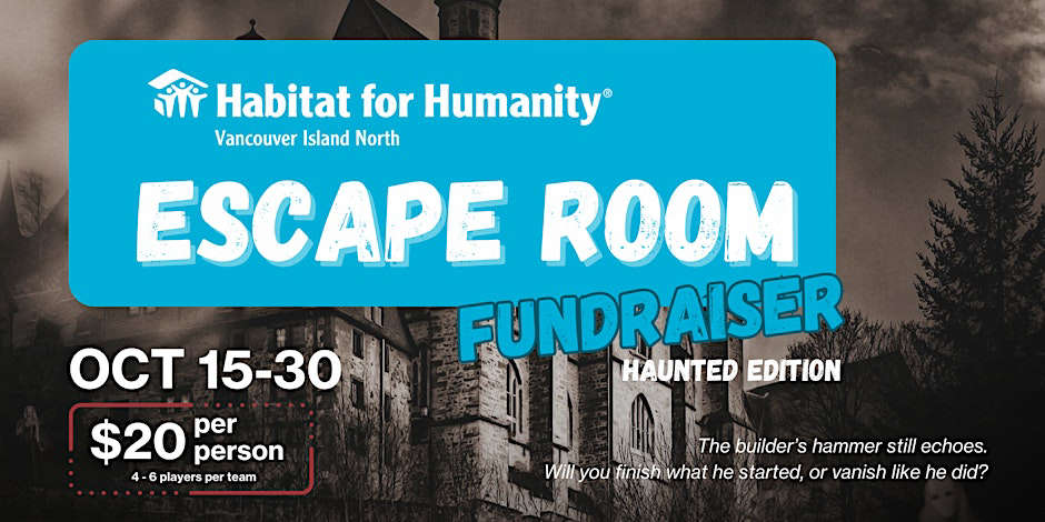 October 15th-30th, Habitat for Humanity Vancouver Island North is holding a Halloween Escape Room fundraiser in Campbell River.