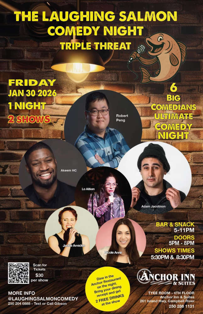 Friday, January 30th, don't miss Laughing Salmon Comedy v3. Triple Threat!
