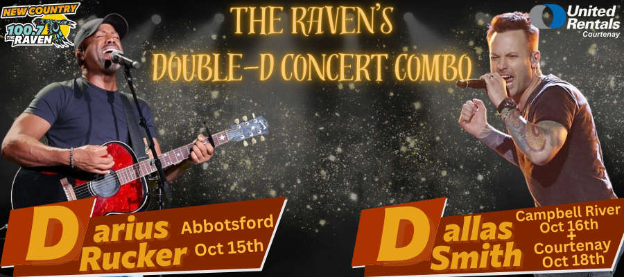 - 2 tickets to see Darius Rucker in Abbotsford on Oct 15th OR Dallas Smith in Campbell River Oct 16th OR Dallas Smith in Courtenay on Oct 18th. One pair per winner, with 3 seperate winners chosen in random draw from all eligible entries received before Oct 10th. Draw to be held on Oct 10th, 2025.