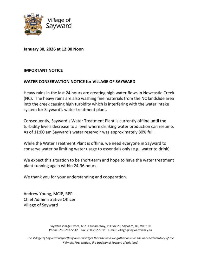Sayward Water Treatment Plant Back Online After Turbidity Issues