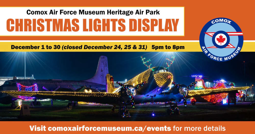 Christmas Lights at Comox Air Force Museum’s Heritage Air Park returns beginning Thursday night.